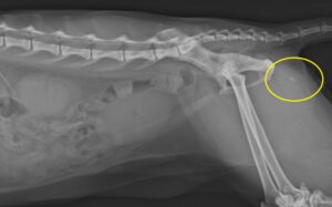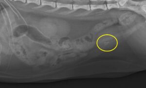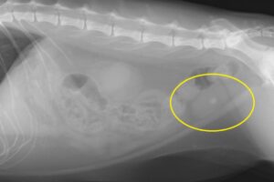Rちゃんは丁度2年前、膀胱結石と尿路結石で尿路閉塞を起こし、膀胱切開と会陰部尿道瘻設置の手術を受けたオス猫君です。1年前のレントゲン撮影ではなかった膀胱結石が、今回ぽこんと1個見つかってしまいました。比較的大きいのと尿道瘻を作っているので、尿道に詰まることはないでしょうが…さて、困った!前回の結石の成分は「シュウ酸カルシウム」でした。これはなかなか厄介で、食餌療法をしていても予防が困難で、もうできる子は体質としか言いようがありません。今回は緊急性がないので、しばらく経過を見ることになりましたが困りました。